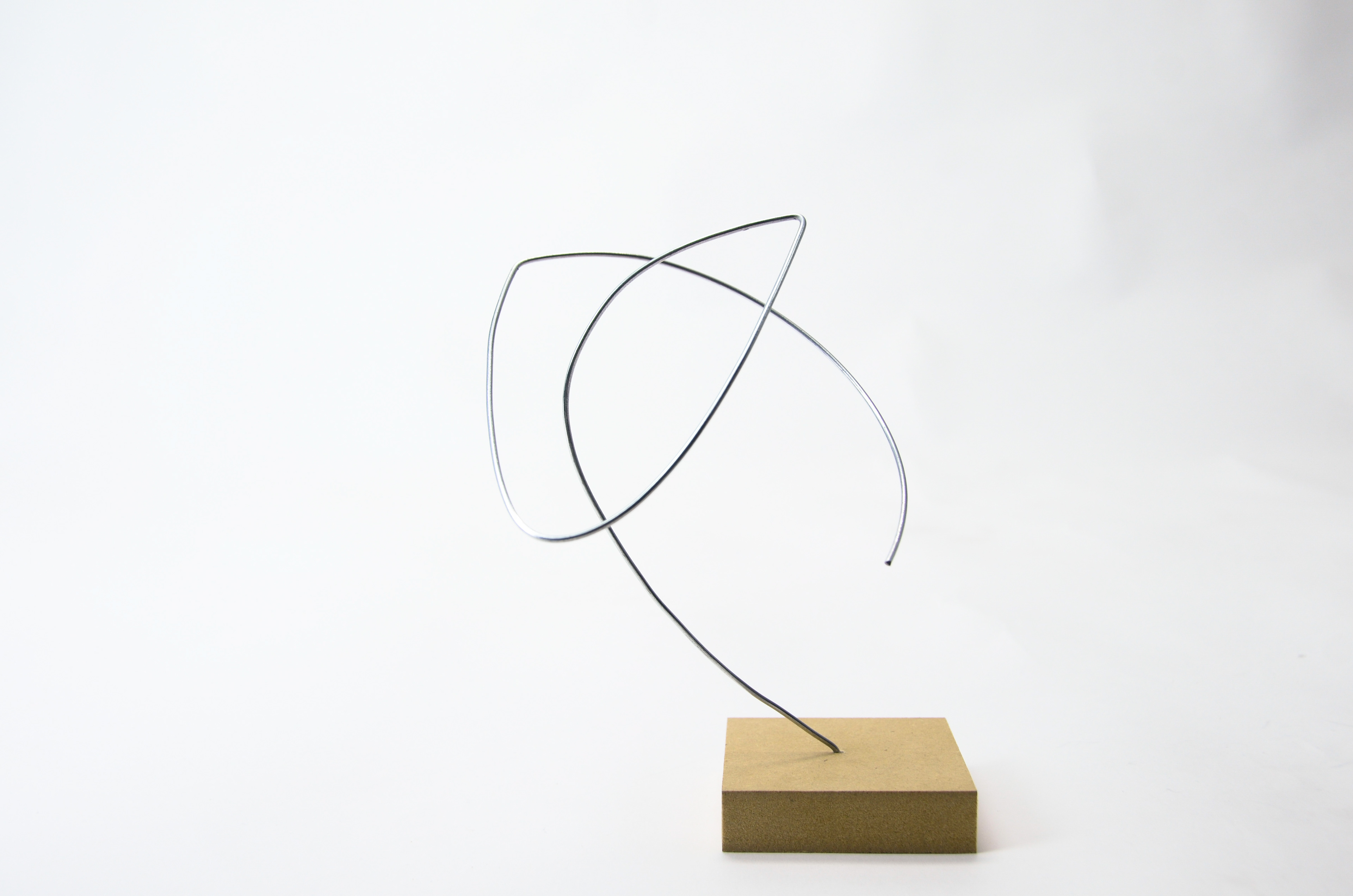 Curves in space: To explore line elements and how different types of curves operate in space, a 3d wire sculpture was produced by merging three types of flat curves which sat on different planes.